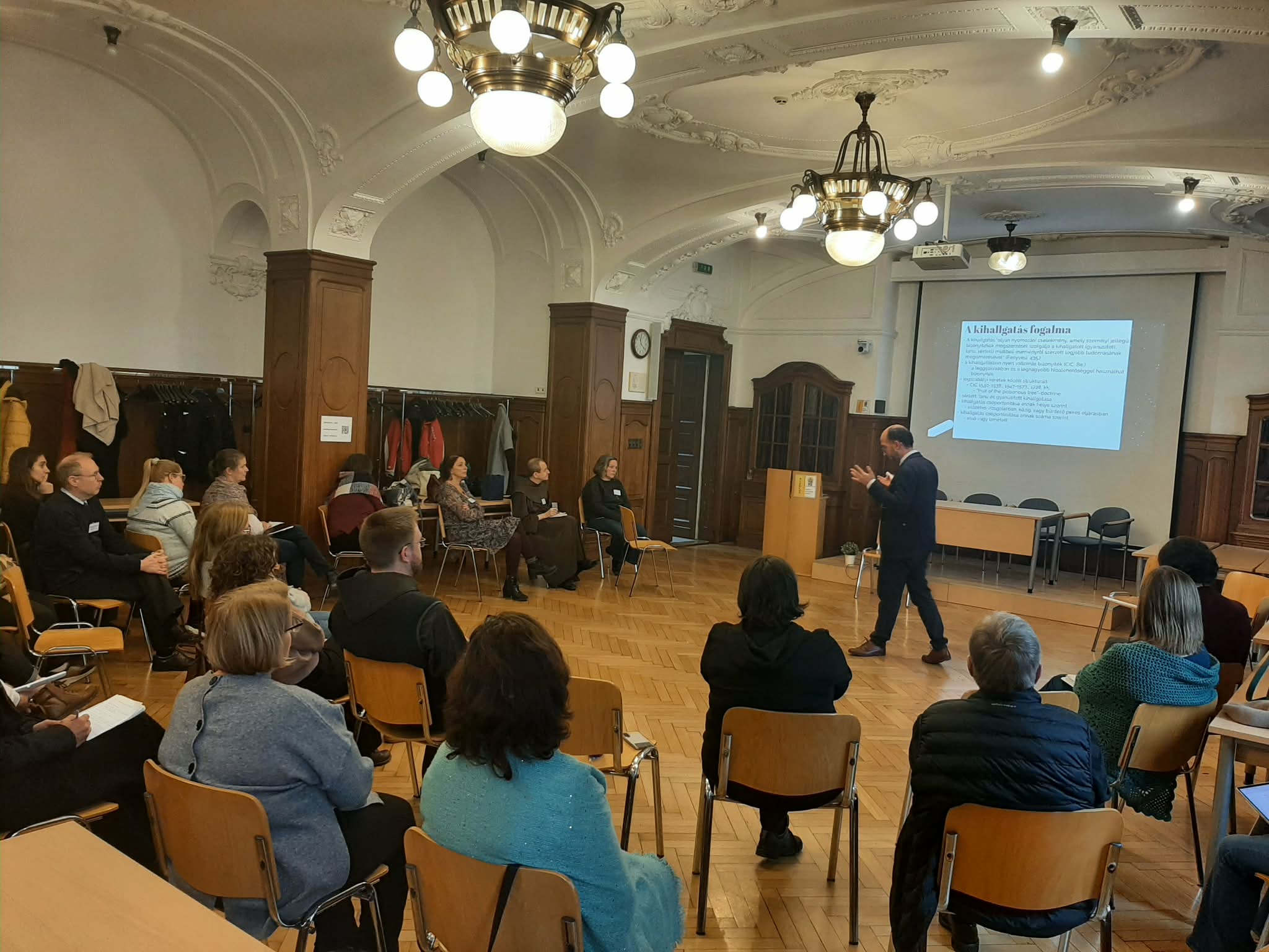 A következő előadó Kiss Gábor egyházjogász volt, aki a gyanúsítotti kihallgatás jelentőségéről beszélt a szexuális bántalmazási ügyek feltárása kapcsán. Az elkövetők kihallgatása során meg kell tudni, hogy mi történt egyáltalán. A mi, hol, mikor, hogyan, ki, kivel, miért? kérdésekre kell válaszokat kapni.