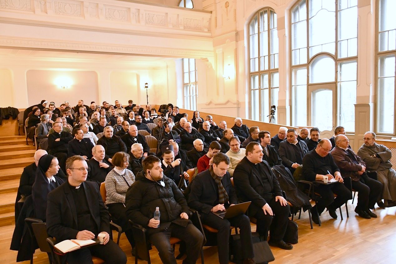 „Ha nem imádkozunk naponta, az erőnk forrása kiapad. Szomorú tapasztalat, hogy a különféle tevékenységek kedvéért lerövidül az imára szánt idő. Az ima kapcsolat az élő Atyával, nem pedig feladat, kötelesség. Ugyanez igaz a szentmisére is: azt kell élnünk, amit ünneplünk. Véleményem szerint imádkozni kell az életet és élni az imát. Gyakran olyan képet alkotunk Istenről, amilyen nekünk tetszik. Jó pap az, aki szépen prédikál, de nem mond zavaró dolgokat. »Plébános úr, mikor lesz már normális pap?« – kérdezték tőlem az egyik közösségben. »És milyen a normális pap?« – kérdeztem vissza. »A normális pap szép homíliákat mond, írókat és költőket idéz. De Ön mindig ezzel a Jézus Krisztussal nyaggat minket« – felelték. »Ha elkezdik a mindennapokban is megélni az evangéliumot, megígérem, hogy kevesebbet fogok Jézusról beszélni« – válaszoltam. Vajon a hívek, az emberek, akik templomba járnak, tudnak‑e beszélni Istenről? Vagy elfelejtettek tanúságot tenni róla? – mondta Varga László püspök, aki ezután bemutatta a kaposvári Szent Fausztina Irgalmasság Házában folyó tevékenységet, amely az imádság és a sérült, lelkileg megsebzett emberek támogatásának tere, valamint beszélt a 2025 őszén Határtalan öröm címmel a fogyatékkal élők számára szervezett szinódus tapasztalatairól is, amelynek célja az „akadálymentes egyház” megteremtése volt.
