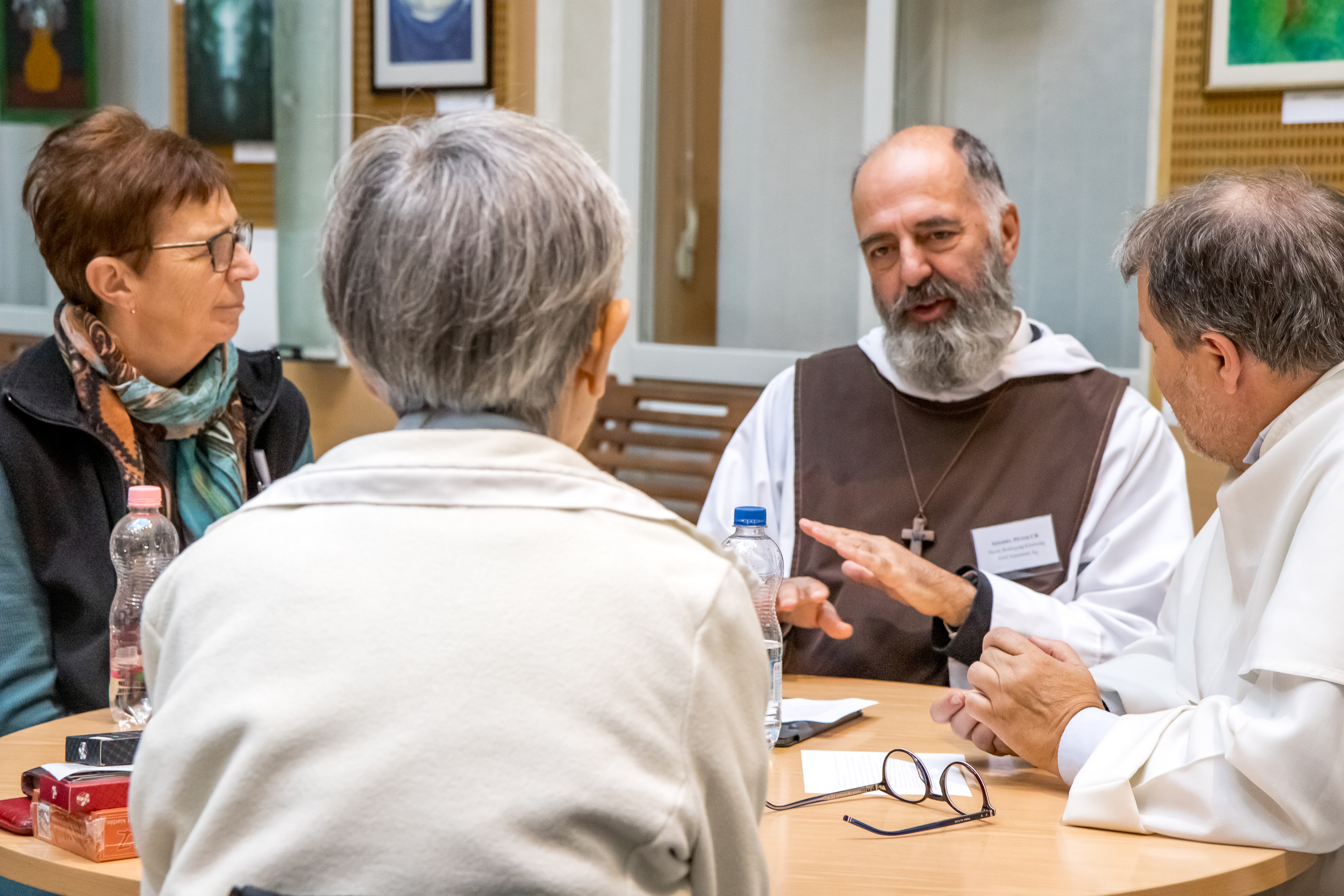 Ebéd előtt kiscsoportos beszélgetésre került sor az aulában, amely szintén az engedelmesség témakörét érintette, ám az elöljáró szemszögéből.