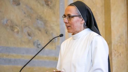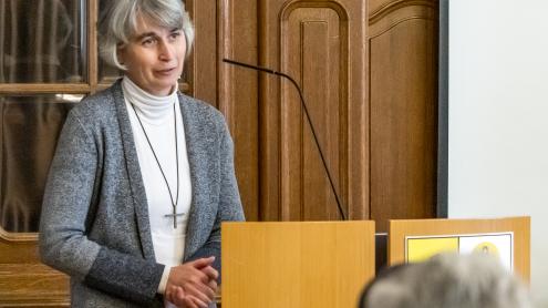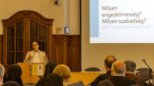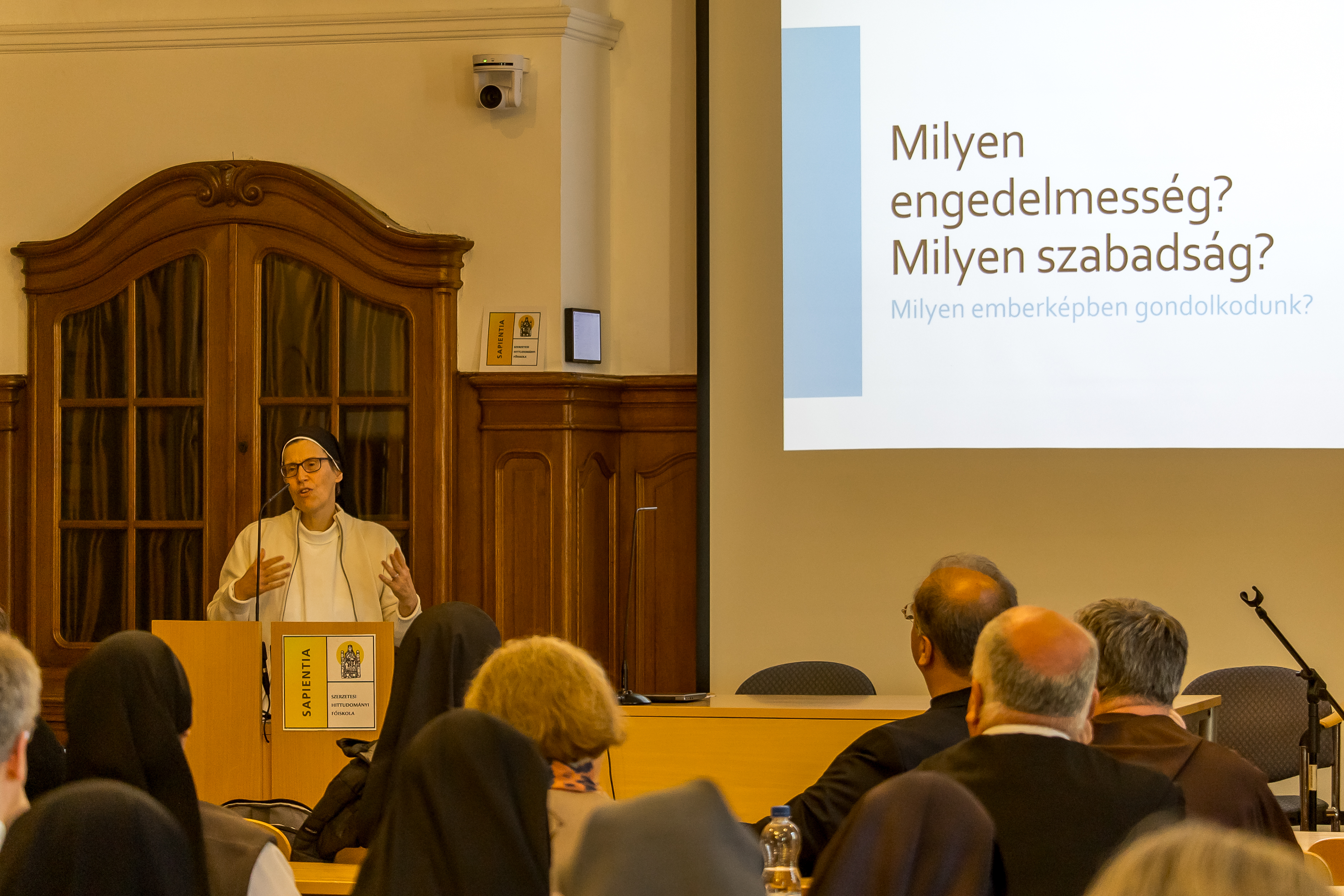 Deák Hedvig OP három kérdéssel kezdte előadását: Milyen engedelmesség? Milyen szabadság? Milyen emberképben gondolkodunk?
