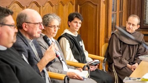 A beszélgetés moderátora Dobszay Benedek ferences volt, aki az Emberi Méltóság Stratégia vezetője is. A résztvevő szerzetesek Takács Anita szociális testvér, Fejérdy Judit ciszterci nővér, Lukács János jezsuita és Galaczi Tibor piarista voltak.