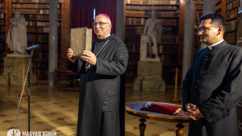 A főapát köszöntötte a szentmise minden résztvevőjét, kiemelte vendégeiket, többek között Majláth Tihamért, az alsósági Szent Miklós-templom plébánosát és Söptei Józsefné celldömölki alpolgármestert, akik ajándékkal érkeztek Szent Benedek ünnepére. A plébánián ugyanis felfedeztek ugyanis egy barokk kori könyvet, Matthias Faber jezsuita pap és hitszónok prédikációgyűjteményét, melynek 1715-ös possessori (tulajdonosi) bejegyzése a pannonhalmi konventre utal.