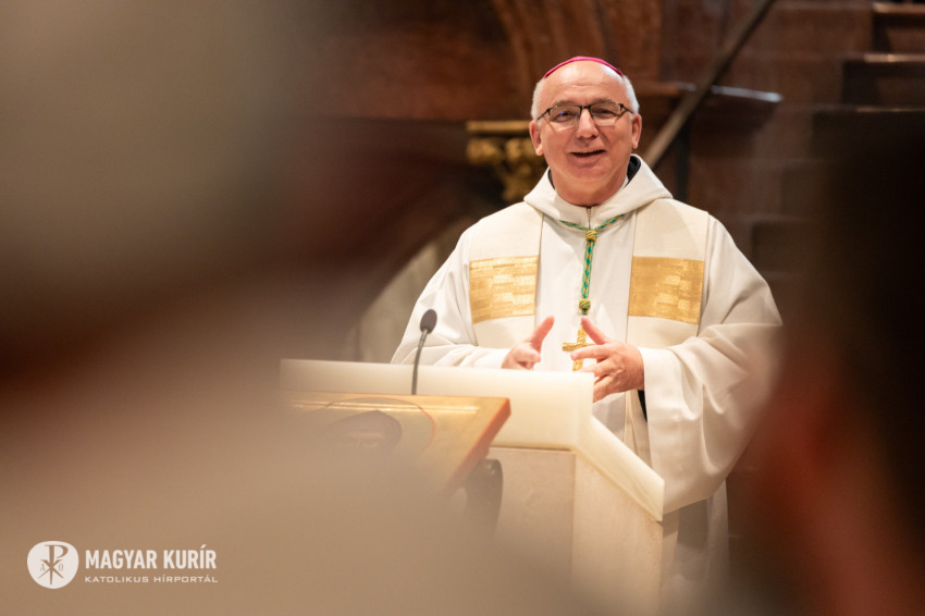 A szentmise főcelebránsa és szónoka Fazakas Márton OPraem, a Csornai Premontrei Prépostság apátja volt. Beszédében személyes hangon emlékezett vissza pannonhalmi éveire, és arra, milyen különös, szinte sorsszerű módon került kapcsolatba a bencésekkel. Bár eredetileg nem akart Pannonhalmára kerülni, sőt igyekezett „elkerülni”, végül mégis itt folytatta tanulmányait a Szent Gellért Hittudományi Főiskolán, ahová elöljárója küldte. Az első pillanatokban idegennek érezte magát, de az idő múlásával barátokra talált, a bencések között otthonra lelt. Fazakas Márton azóta is úgy tekint vissza erre az időszakra, mint életének meghatározó állomására, amikor nemcsak tanult, hanem emberileg is formálódott. Kapcsolata a bencésekkel mély tiszteletté és hálává alakult: tanáraira példaképként emlékezik, és még évekkel később is napi szokása, hogy olvassa Szent Benedek reguláját. Ez a tartós lelki kötődés és szellemi rokonság egész papi szolgálata során kíséri.
