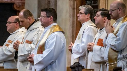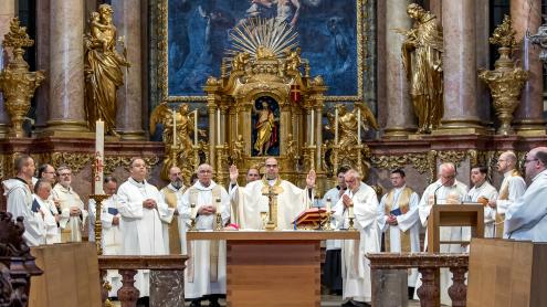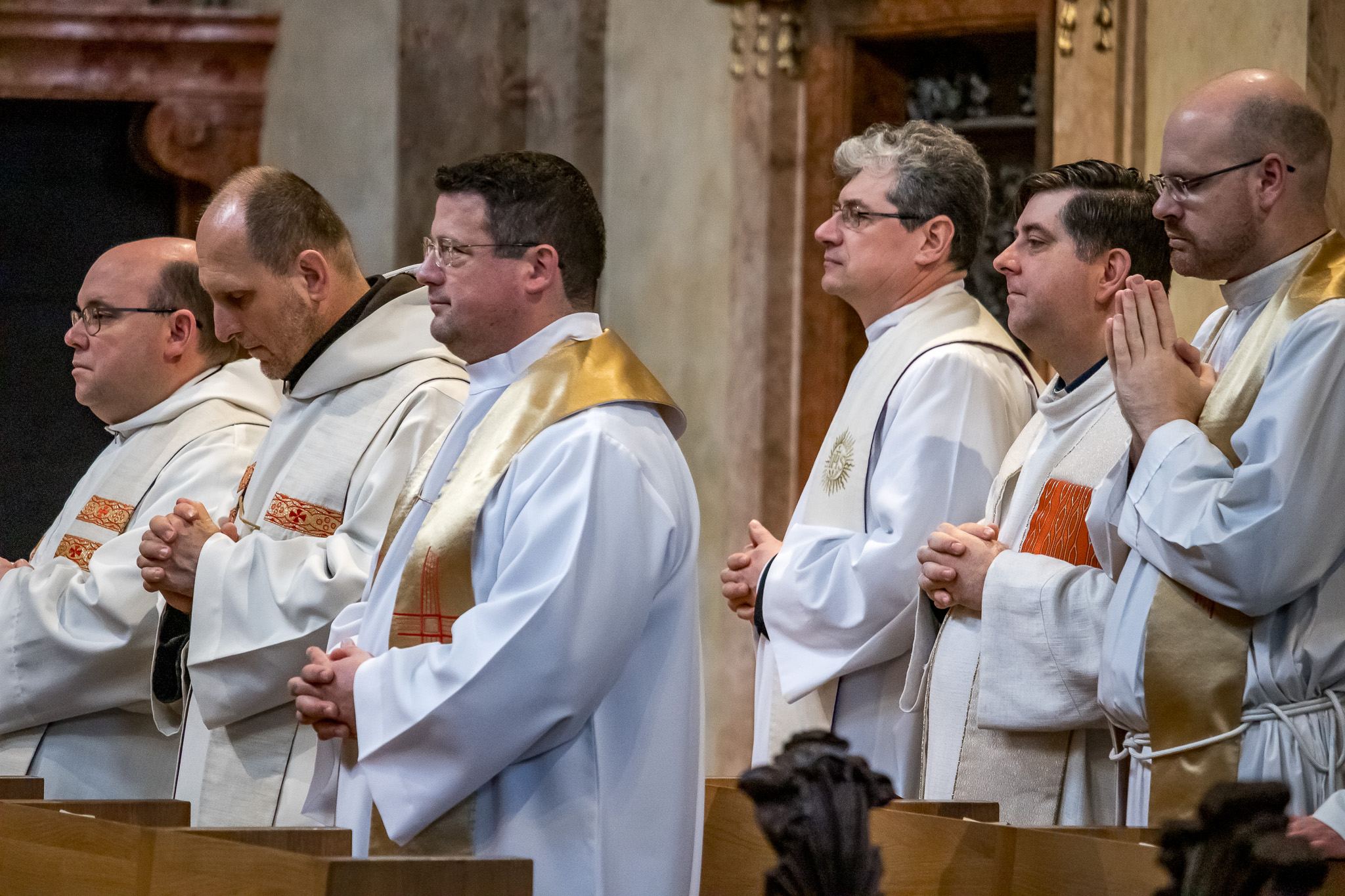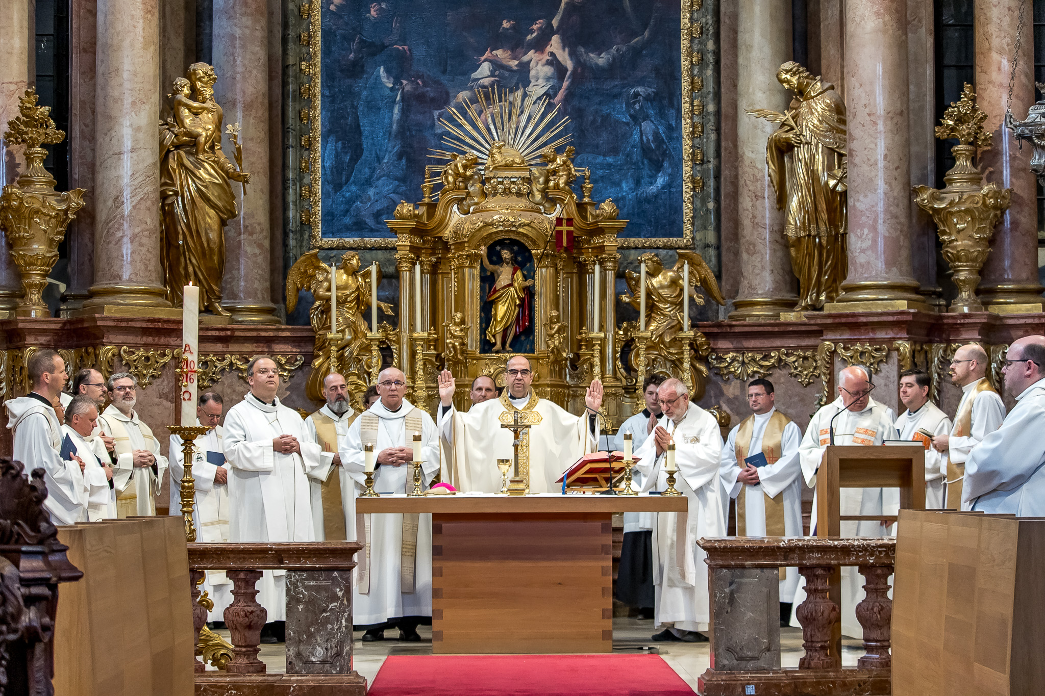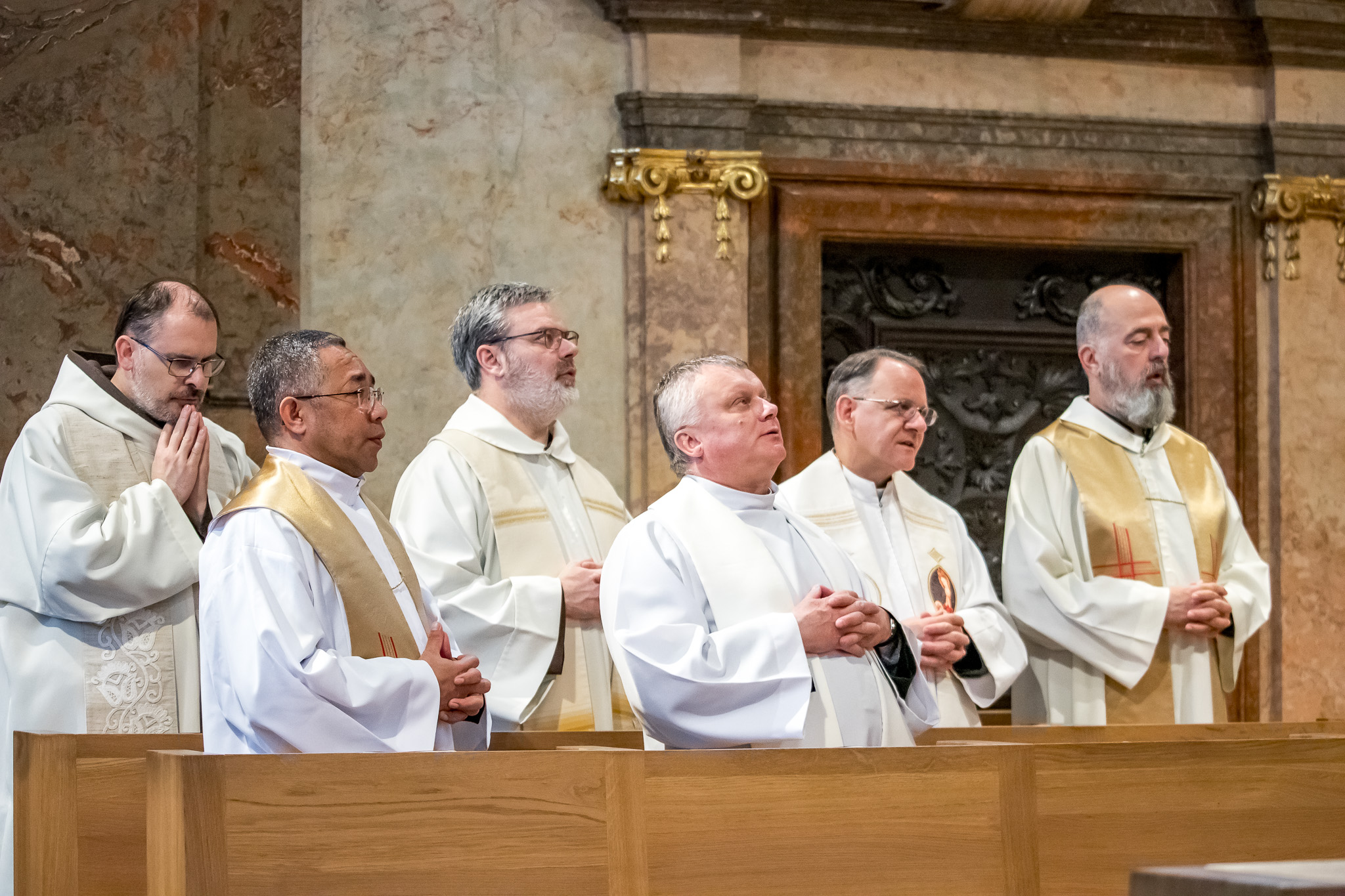 A találkozót szentmisével kezdték az elöljárók, ahol Székely János püspök atya mondott homíliát. (Ennek összefoglalása a cikk alján olvasható). A beszédében kiemelte, Jézusban a Lélek teljessége lakozik, és Ő ezt az „élő vizet” akarja továbbadni a világnak. Ez a folyamat a feltámadás után válik teljessé, amikor rálehel az apostolokra: „Vegyétek a Szentlelket”. A szerzetesi karizmák nem mások, mint ennek a teljességnek a gyümölcsei, az alapító szentek válaszai a Lélek hívására.