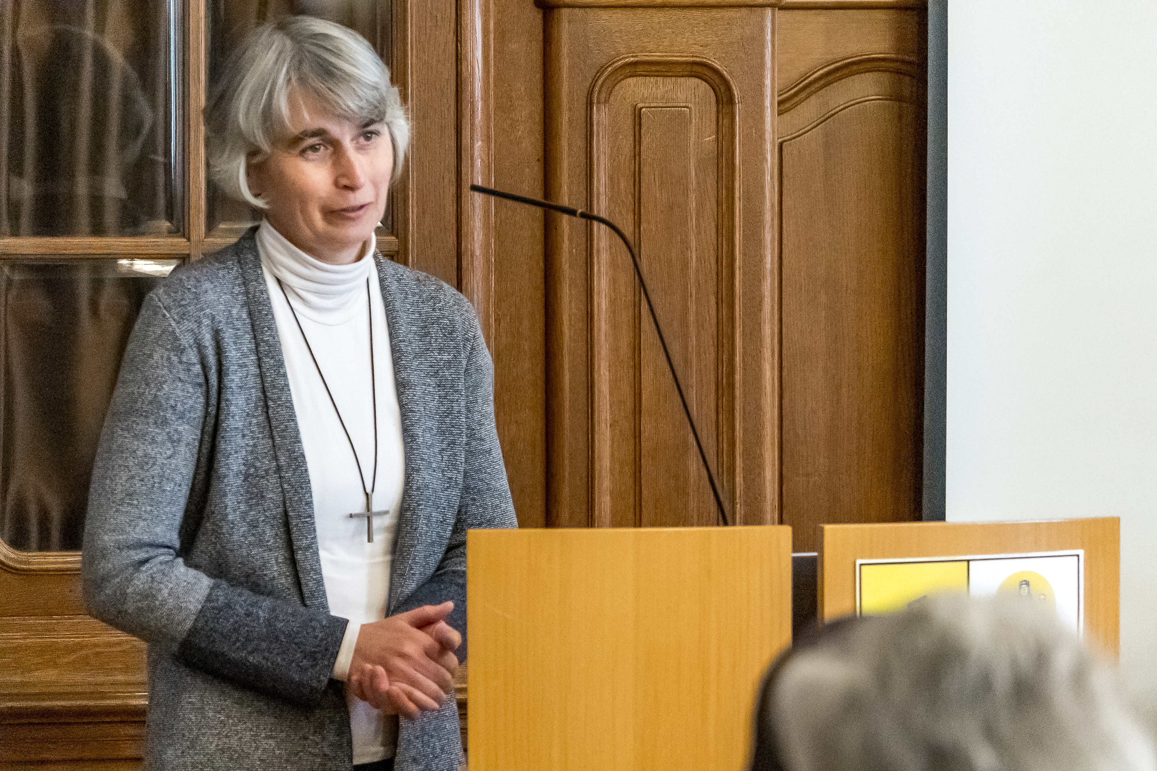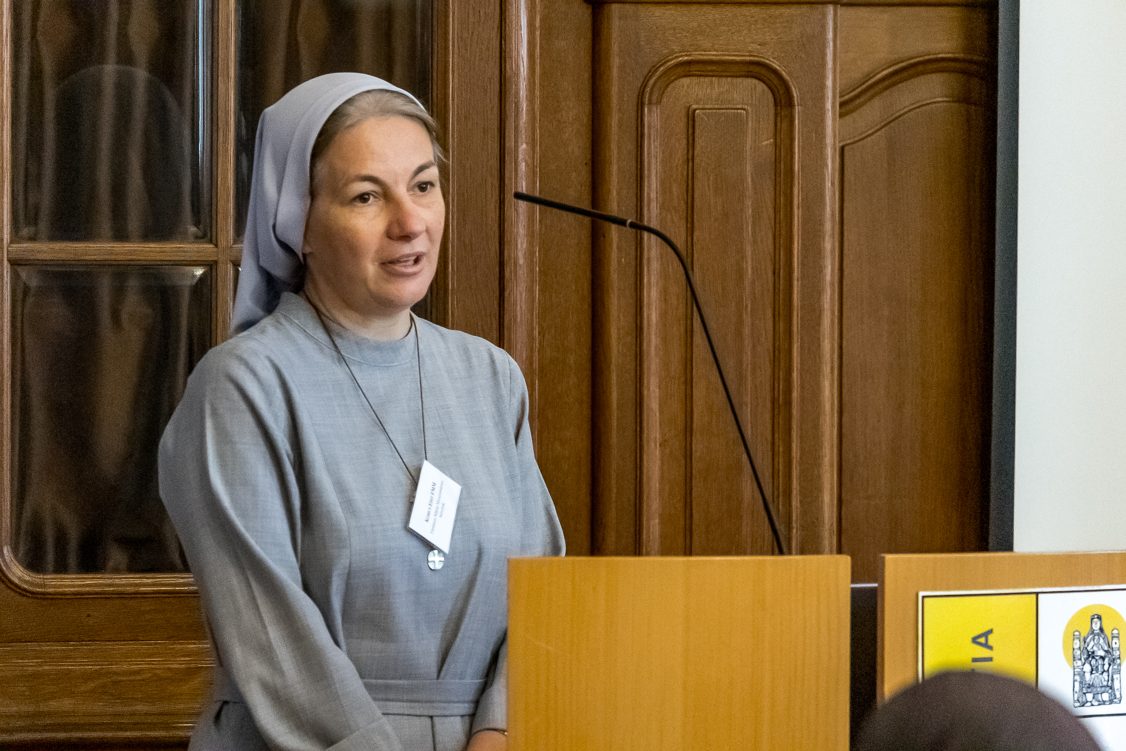 Deák Hedvig OP három kérdéssel kezdte előadását: Milyen engedelmesség? Milyen szabadság? Milyen emberképben gondolkodunk?