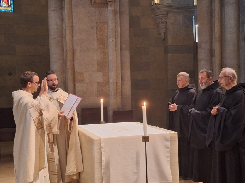 „Építs te is sátrat az Úrnak! A találkozás sátrát, hogy az előtted álló negyven évben legyen egy védett hely, ahol te és ő is otthonra találtok, és ahol te is az arcodon érezheted Isten közelségének melengető tüzét és dicsőségének ragyogását” – ezekkel a szavakkal fordult Metód testvér felé Imre atya a reggeli laudesben. A szerzetes az egy éves noviciátus letelte után, Urunk színeváltozásának ünnepén, 2025. augusztus 6-án egyszerű fogadalommal köteleződött el Szent Benedek családjában.