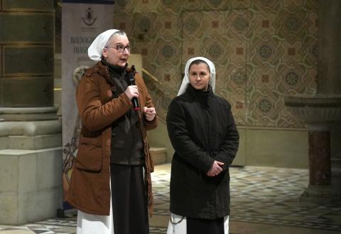 Az idén ötvenéves Nyolc Boldogság Közösség pécsi alapításának nővérei, Mikovics Krisztina és Valter Margit bemutatkozásukban elmondták, a közösség nővéri ága 1988 óta van jelen Magyarországon. Három szerzetesnővér Felföldi László püspök meghívására 2022-ben érkezett és alapított közösséget Pécsett, ahol jelenleg az iskolai hitoktatásban vesznek részt, egyetemi kurzust vezetnek, egyetemisták lelki kísérését és hittanár-hallgatók mentorálását végzik.