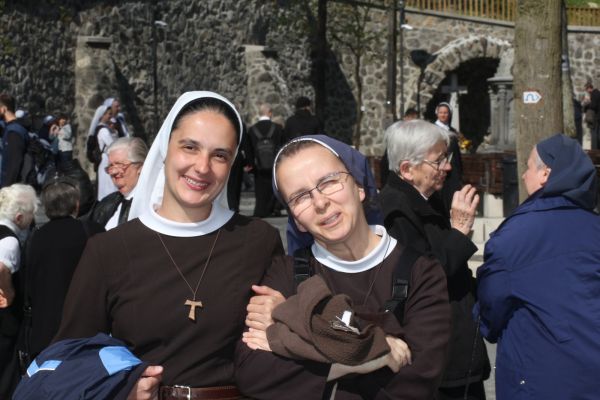 A szombati szerzetesek ünnepére összesen mintegy 600 szerzetes érkezett. Nagyon vártam közösségem többi tagját, akik nem tudtak gyalog jönni. Örültem, amint láttam, hogy újabb és újabb közösségek, szerzetes csoportok érkeznek, saját dallamaikkal köszöntik az Urat, és a szabadtéri miséző hely lassanként megtelik a családiasan zsibongó, egymást üdvözlő sok-sok szerzetessel. Én is sok ismerőst megkerestem, másoknak az arca volt csak ismerős és megkerestük életünk múltbéli közös pontjait. Gazdagodtunk és erősödtünk egymás megküzdött hűsége által.