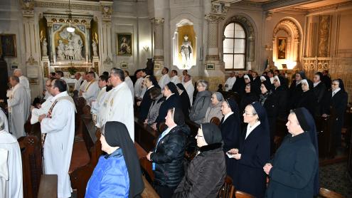 A temesvári egyházmegyében hagyományosan lelki nappal, a papság, valamint a megszentelt életet élők találkozójával ünneplik a megszentelt élet világnapját az ehhez a dátumhoz legközelebb eső szombaton – idén január 31‑én. A találkozónak a Gerhardinum Római Katolikus Teológiai Líceum adott otthont. A program 10 órakor ünnepi szentmisével kezdődött, amelyet Pál József Csaba megyés püspök mutatott be a temesvári piarista templomban a jelen lévő papok, szerzetesek és szerzetesnők részvételével, akik az egyházmegye szinte minden plébániájáról és közösségéből érkeztek. Koncelebrált Varga László kaposvári megyés püspök. A szentmise zenei szolgálatát Bajkai‑Fábián Róbert, a Szent György‑székesegyház orgonistája végezte.