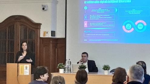 Ebéd után Ablonczy Zsuzsanna, szintén a KPMG munkatársa beszélt az adóbevallás digitalizációjáról, az ezen a területen tervezett rendszerváltás tartalmáról és időbeli ütemezéséről.