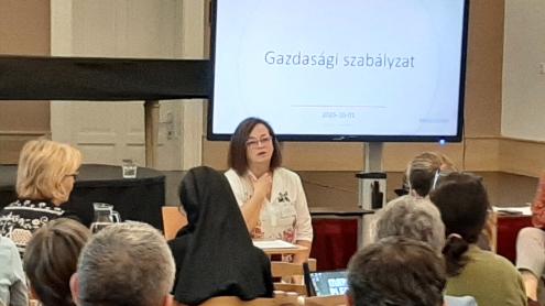 A délelőtt második részében Sándor Cecília, a Pannonhalmi Főapátság gazdasági vezetője tartott előadást a pénzkezelési szabályzat céljáról, tartalmáról és kötelező elemeiről. Mindkét előadó anyagát megkapják majd a jelenlévők, hogy segítségként tudják használni.