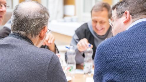 Ebéd előtt kiscsoportos beszélgetésre került sor az aulában, amely szintén az engedelmesség témakörét érintette, ám az elöljáró szemszögéből.