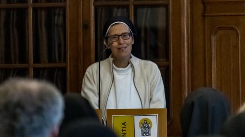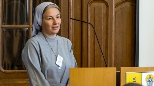 Deák Hedvig OP három kérdéssel kezdte előadását: Milyen engedelmesség? Milyen szabadság? Milyen emberképben gondolkodunk?
