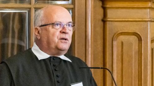 A plenáris a díszteremben folytatódott, ahol Dr. Bagyinszki Ágoston OFM, a Sapientia Szerzetesi Hittudományi Főiskola rektora köszöntötte a jelenlévőket, majd ismertette a szerzetesi főiskola fejlesztési tervét.