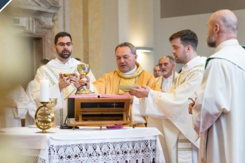 Jézus a legfontosabb feladatot és lelkületet úgy határozza meg, hogy a világba küld tanítani, papságban megélni. „A tanárság, a papság rendje, a szerzetesi fogadalom olyan egységet és olyan biztonságot teremt, amelyben megtaláljátok mindig magatokat.” De fontos, hogy ti legyetek benne – hangsúlyozta a püspök. „Azt a tudást, azt a szeretetet, azt a hitet, azt az emberi méltóságot, amit az Isten nektek adott, azt senki másnak nem adta oda, és senki más nem tudja ebben a világban elmondani. (…) Az az út és az a világ, amelyben elindultok, egy teljesen ismeretlen világ. Ezen az úton még a földön senki nem járt. Senki nem tudja megmondani nektek, hogy kell megélni ezt.”