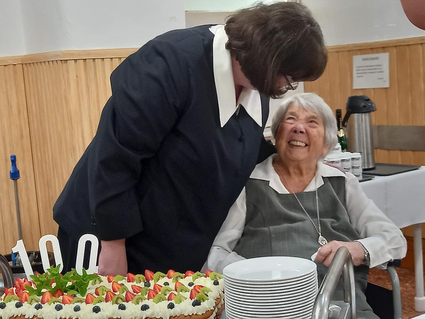 Köztük az otthon legidősebb lakója, Maróti Margit SJC testvér is, aki a Társasággal együtt idén ünnepli 100. születésnapját. A szentmise utáni közös ünnepi ebéden erről is megemlékeztek.