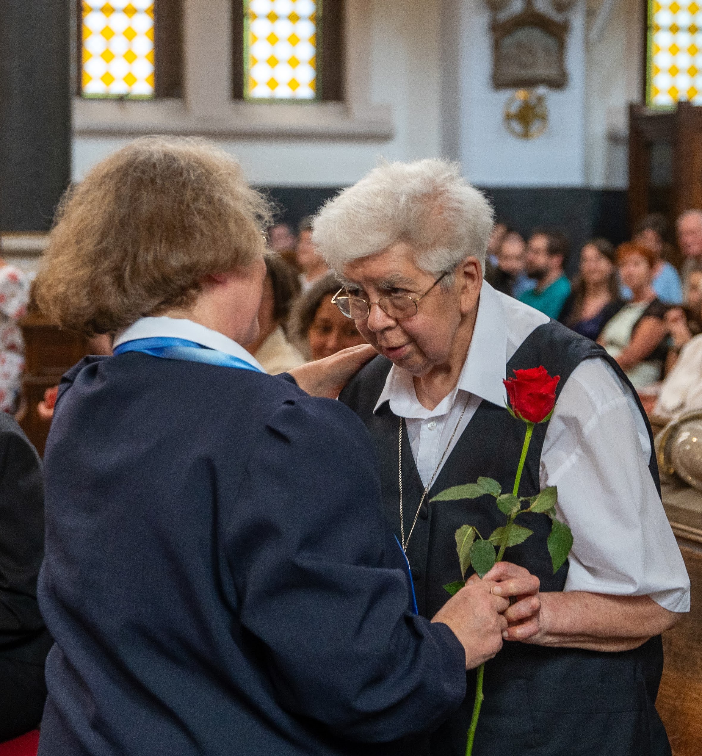 Mély elköteleződése ellenére a külső körülmények miatt örök esküt csak 1975. augusztus 15-én tehetett. Egész életének jelmondata volt: „szolgálni Istent és embertársaimat”.