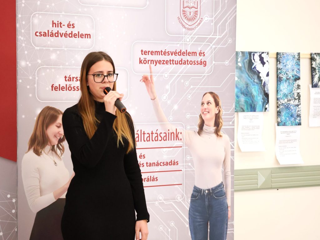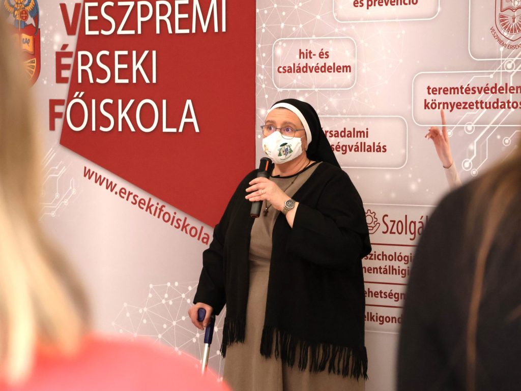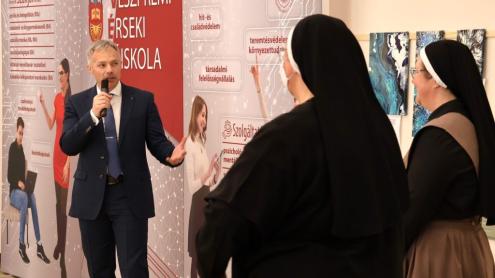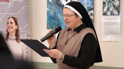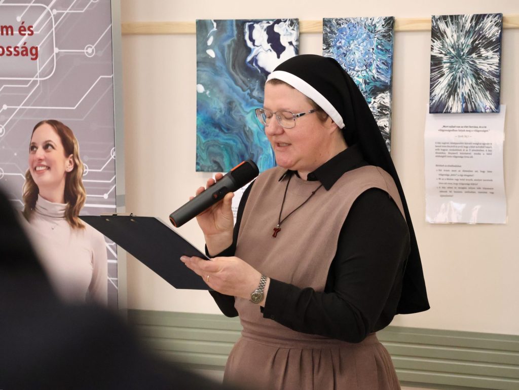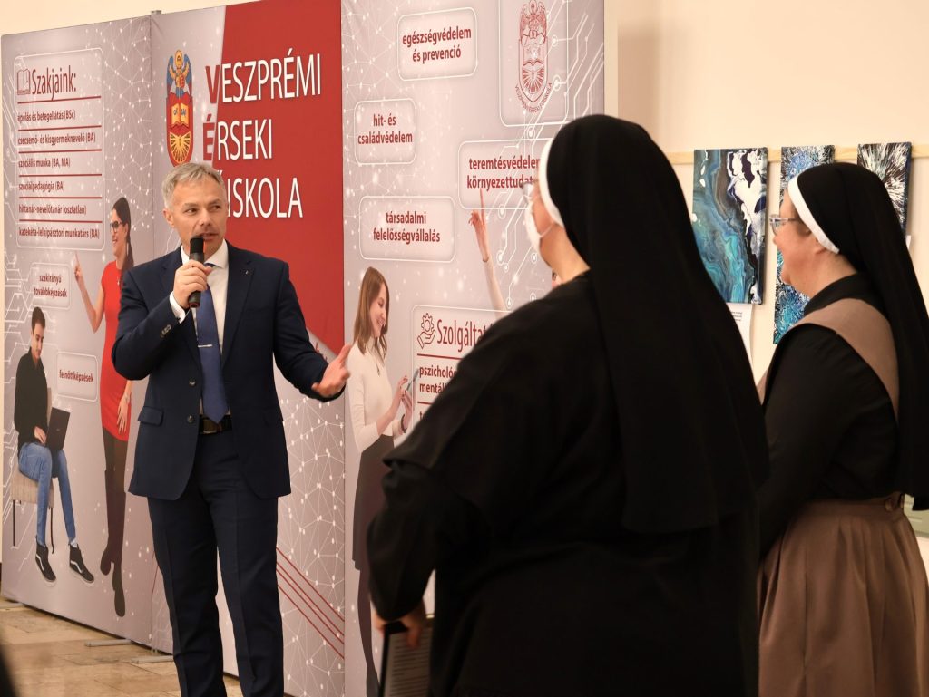Ünnepélyes keretek között nyílt meg Erzsébet nővér kiállítása a Veszprémi Érseki Főiskolán, ahol tizennyolc különböző alkotást lehet megtekinteni.