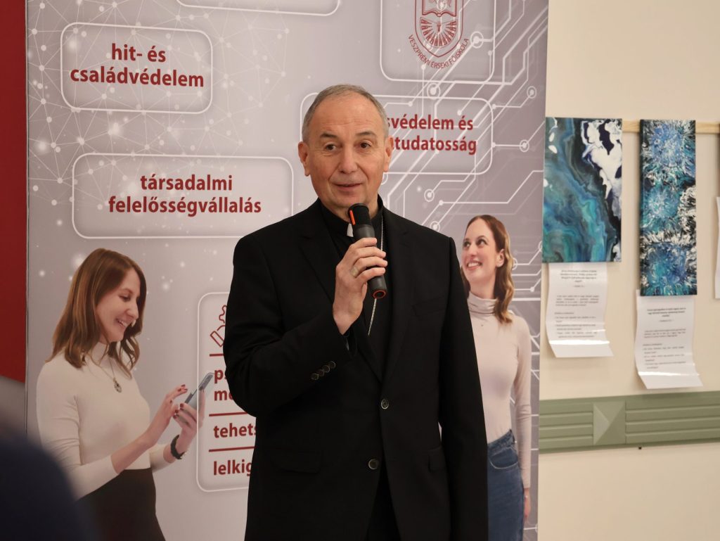 A művészet akkor válik igazán élővé, amikor nem csupán a szemünket szólítja meg, hanem a lelkünket is – fogalmazott Dr. Udvardy György veszprémi érsek Takács Tünde, Erzsébet nővér kiállításának megnyitóján a Veszprémi Érseki Főiskolán. A tárlat a művészet eszközeivel hívja belső útra a látogatót: önmagunk, és ezen keresztül Isten felé.