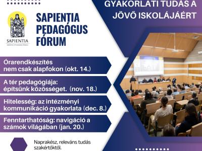 Szeretettel hívjuk és várjuk az érdeklődő pedagógusokat a Sapientia Pedagógus Fórum alkalmaira!