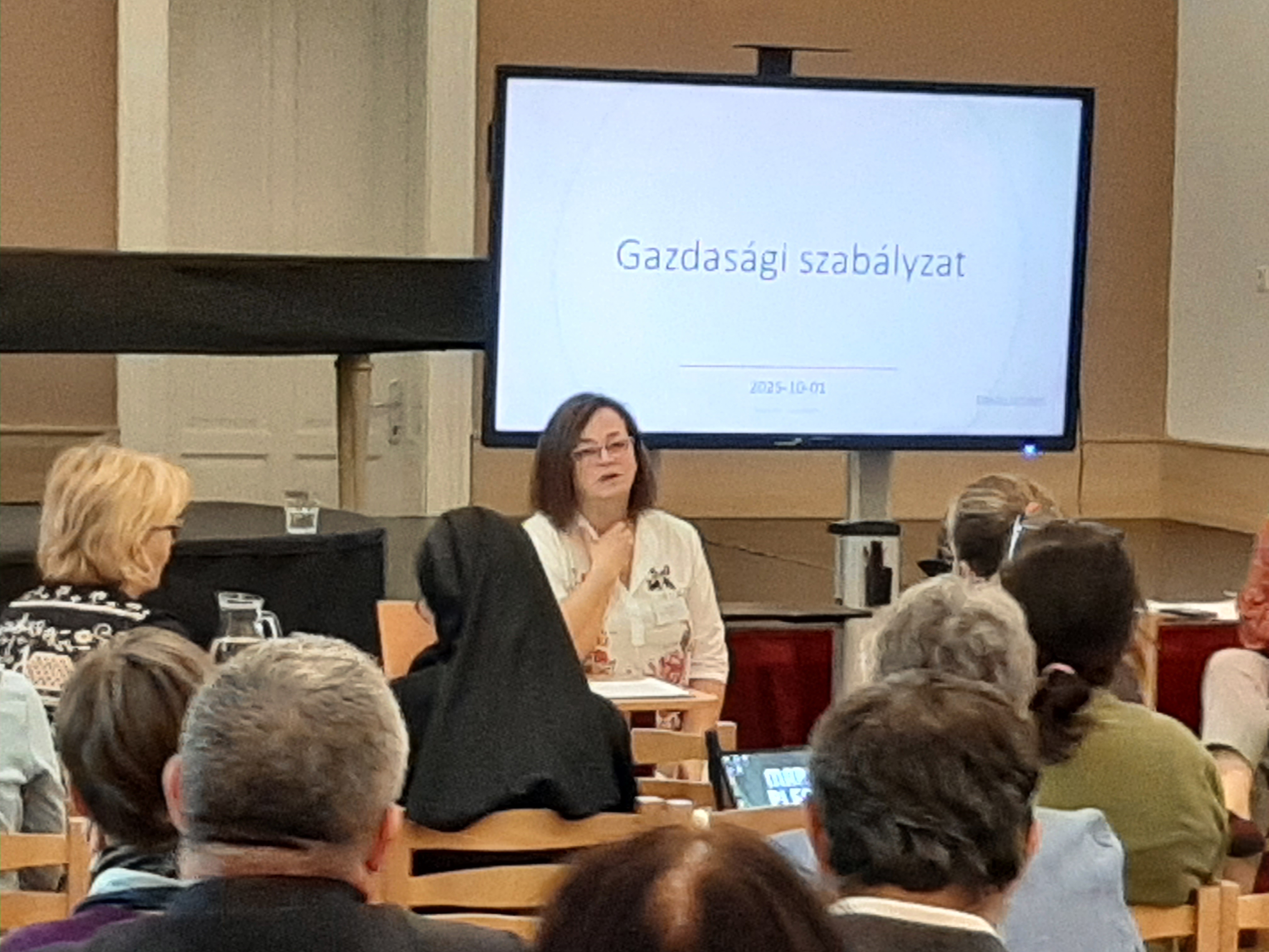 A délelőtt második részében Sándor Cecília, a Pannonhalmi Főapátság gazdasági vezetője tartott előadást a pénzkezelési szabályzat céljáról, tartalmáról és kötelező elemeiről. Mindkét előadó anyagát megkapják majd a jelenlévők, hogy segítségként tudják használni.